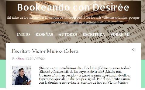 Detrás de cada obra existe un autor. Son inseparables. Cada obra es un reflejo, una parte de él. Bookeando con Desirée nos ayuda a conocer a muchos de ellos. A continuación os dejo un breve extracto de su entrevista. Podrás leerla completa en su blog: